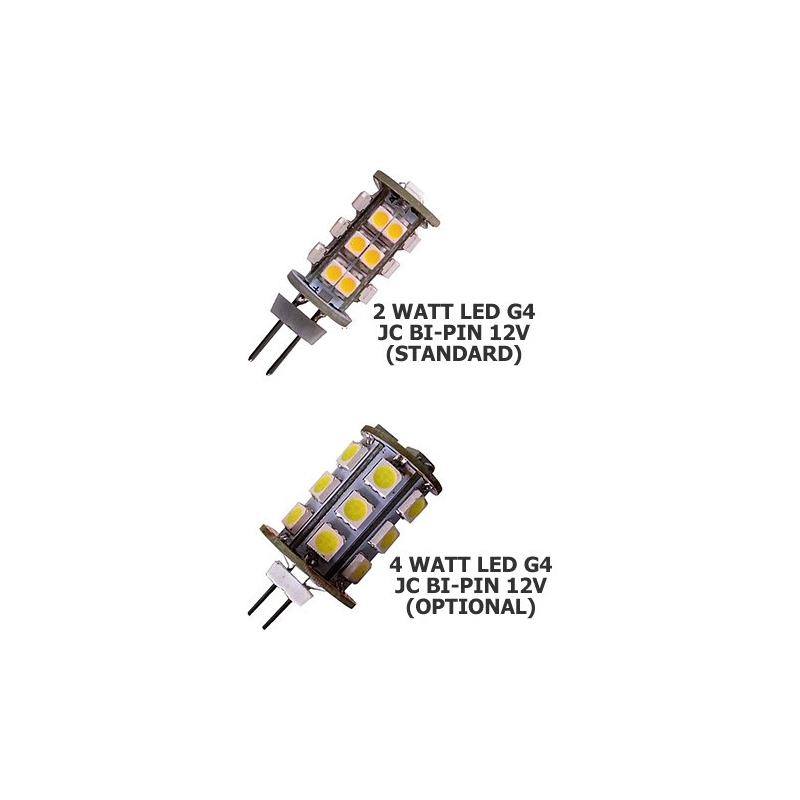 | Equivalent To | 2W LED - 20W Halogen; 4W LED - 35W Halogen |