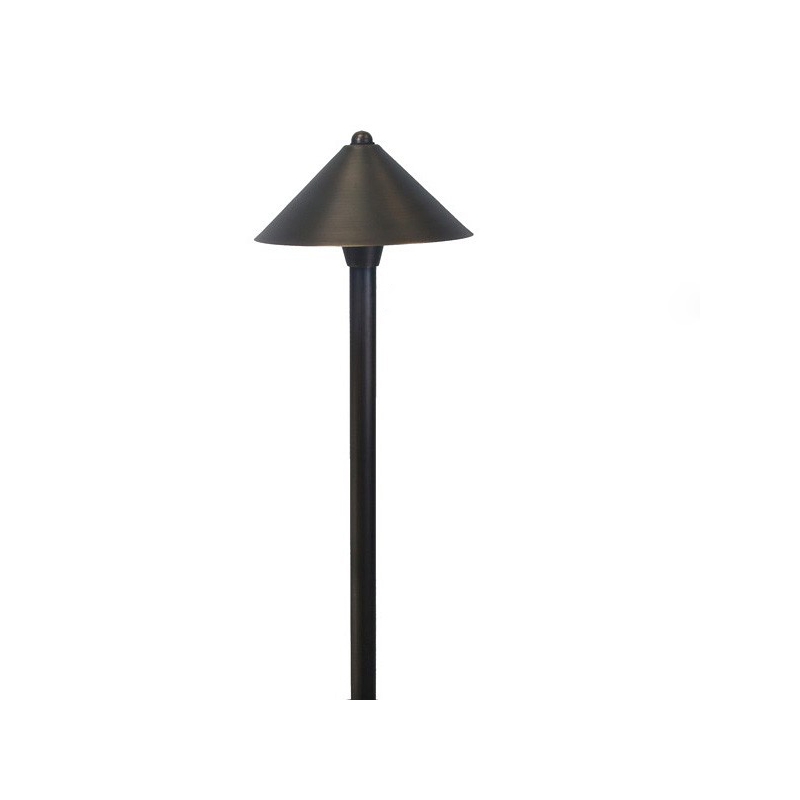 12V LED outdoor solid brass 23" tall area light with an 8" head. Price includes a heavy duty composite PVC stake. See below for LED bulb information: